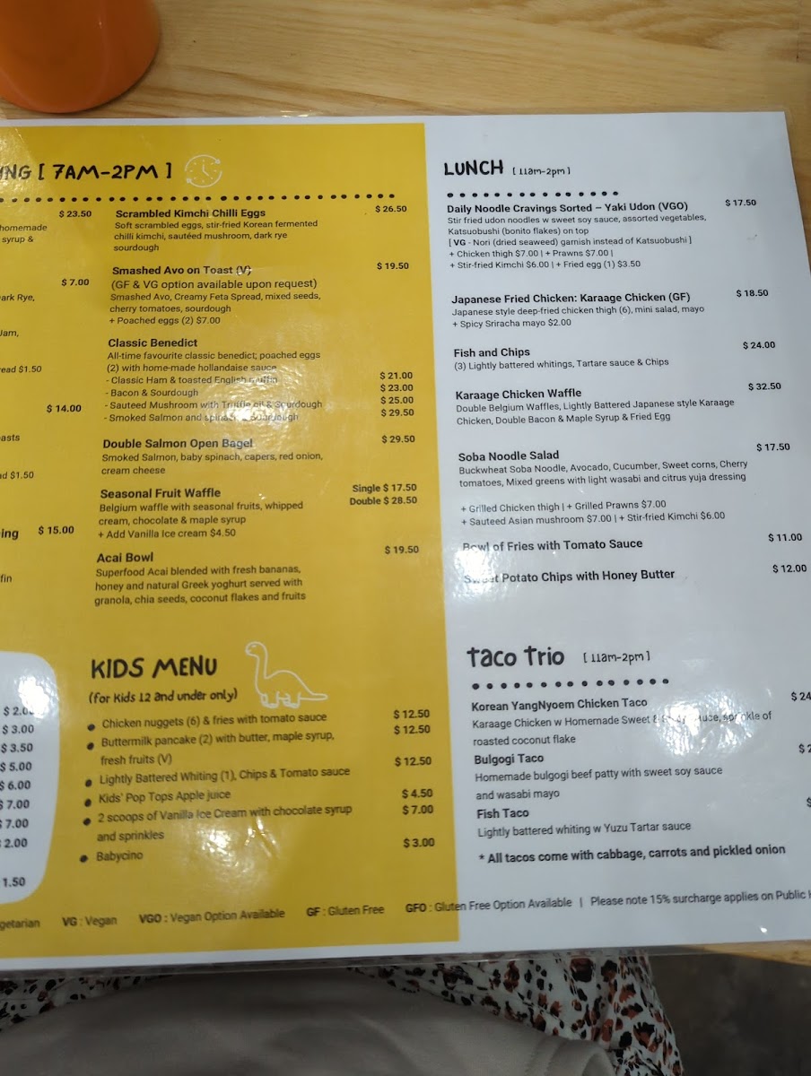 The Taco Menu features tantalizing options like the Korean Yang Nyoem Chicken Taco and Bulgogi Taco, each priced at A$24. For lunch, diners can indulge in favorites such as Yaki Udon and Japanese Fried Chicken Karaage, impressively priced at A$17.50 and A$2.00 respectively. Sweet potato chips with honey butter (A$12) offer a heartwarming touch to any meal.